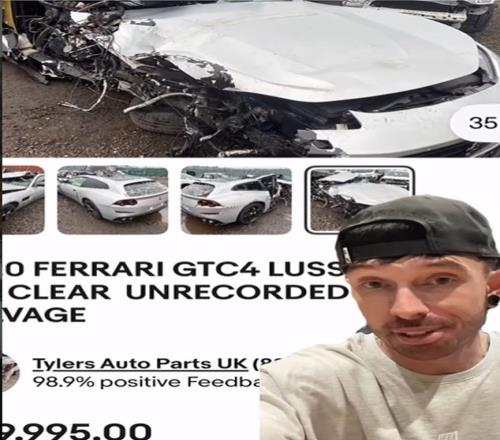 事故现场照片显示,这台灰色法拉利的右侧受损严重;10个月后,eBay上展示的残骸状态与现场照片一致。