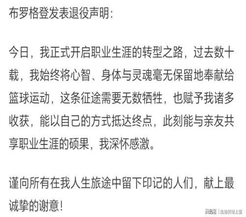 据悉,布罗格登在经过深思熟虑后已于当地时间周三告知尼克斯管理层关于自己的退役决定。随后,马尔科姆布罗格登发表了退役声明,如下截图: