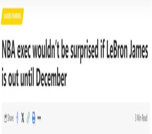 北京时间10月16日,詹姆斯何时能迎来2025-26赛季的首秀还是未知数,但一位NBA高管向《湖人日报》表示,若这位未来名人堂成员缺席至12月,他并不会感到意外。