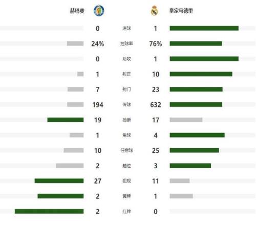 第42分钟皇马获得一次反击的良机,但马斯坦托诺摔倒,挡住了队友向前推进的线路,虽然皮球转移到左路后,罗德里戈完成了一脚打门,但角度太小被主队门将扑出,半场比赛结束之前,阿拉巴大禁区前沿的直接任意球轰门,又被赫塔费门将神勇挡出,双方也带着0-0的比分,结束了上半场的争夺。