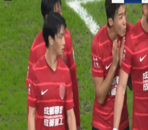 随后,严鼎皓主罚任意球破门,成都蓉城取得了领先。此时,徐正源恢复了冷静,示意球员们保持冷静。