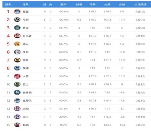 快船赢球后3胜2负,排名从西部第九来到第六。鹈鹕输球后0胜5负,排名西部垫底。