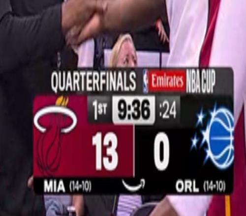 首节热火一度领先最高15分,30比15的双倍分数差。