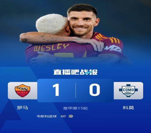2025-26赛季意甲第15轮于北京时间12月16日凌晨3时45分在罗马奥林匹克球场展开,主场的罗马迎战科莫。经过90分钟的激战,罗马以1-0险胜对手,成功终止之前的两场联赛失利,积分达到30分,仍然排名第4,离榜首的国际米兰仅有3分之差。