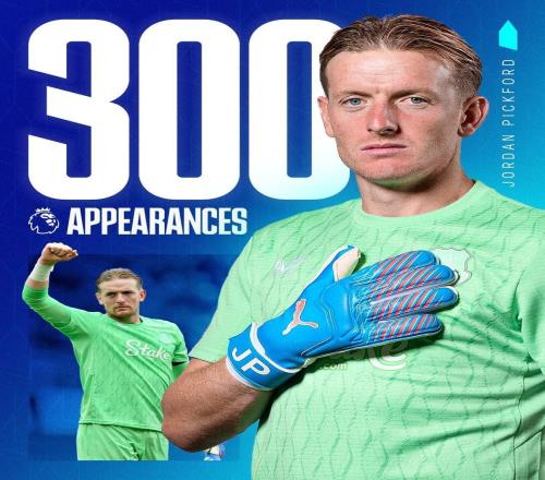 里程碑,皮克福德迎来埃弗顿生涯英超第300次出场