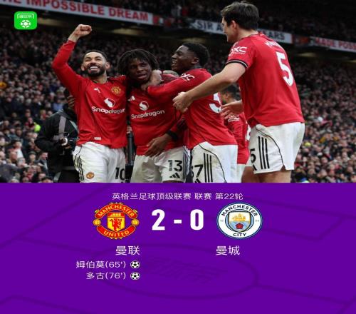 笑傲德比!曼联20送曼城联赛4轮不胜姆伯莫破门多尔古建功