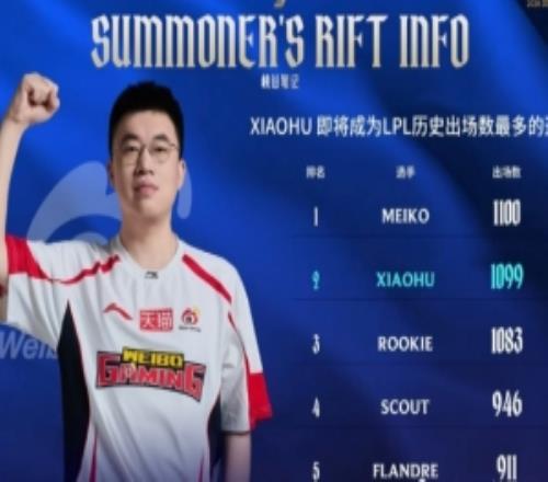 仅差一场!xiaohu即将超越Meiko成为LPL出场数最多的选手